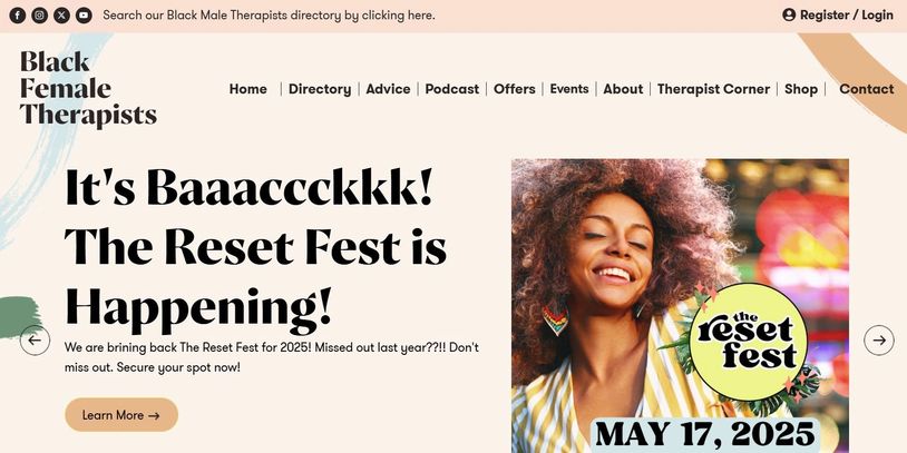 And men, don’t worry! There are male therapists available as well. Once you visit the website, simply click the link at the top that says, “Search Our Black Male Therapist Directory by clicking here.”